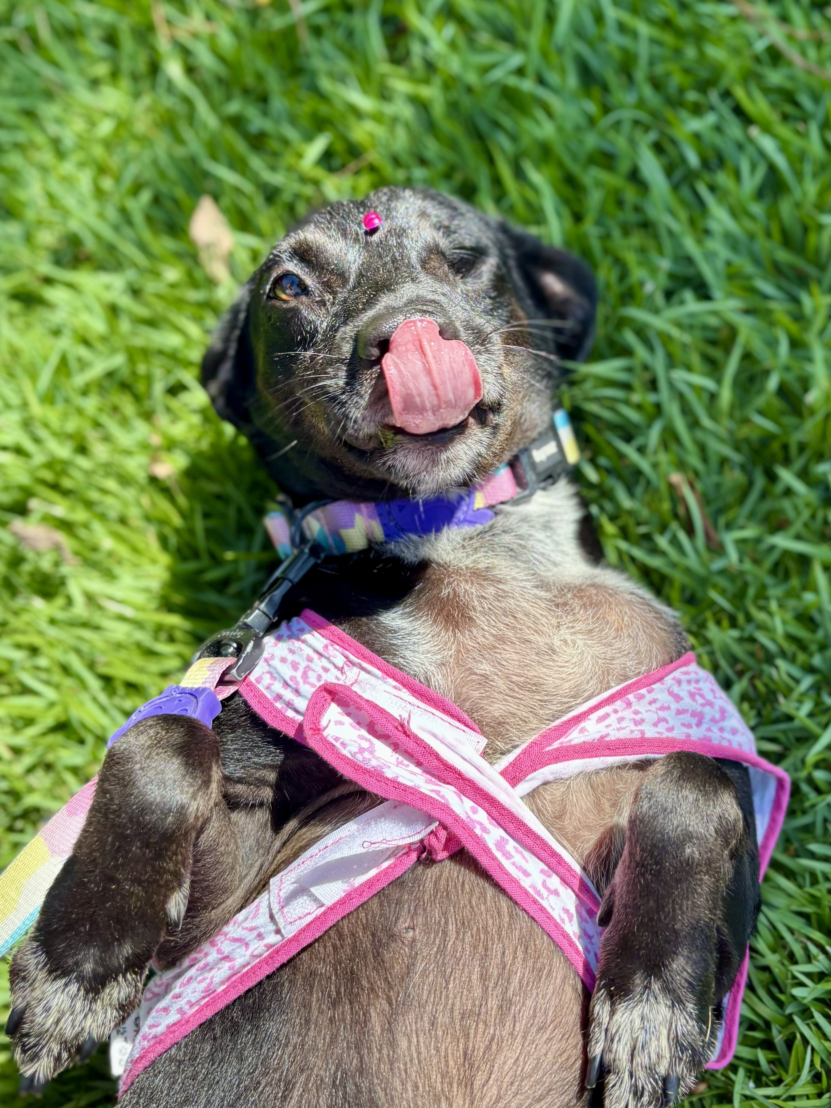 É uma cadelinha dócil, brincalhona e se dá bem com outros animais.